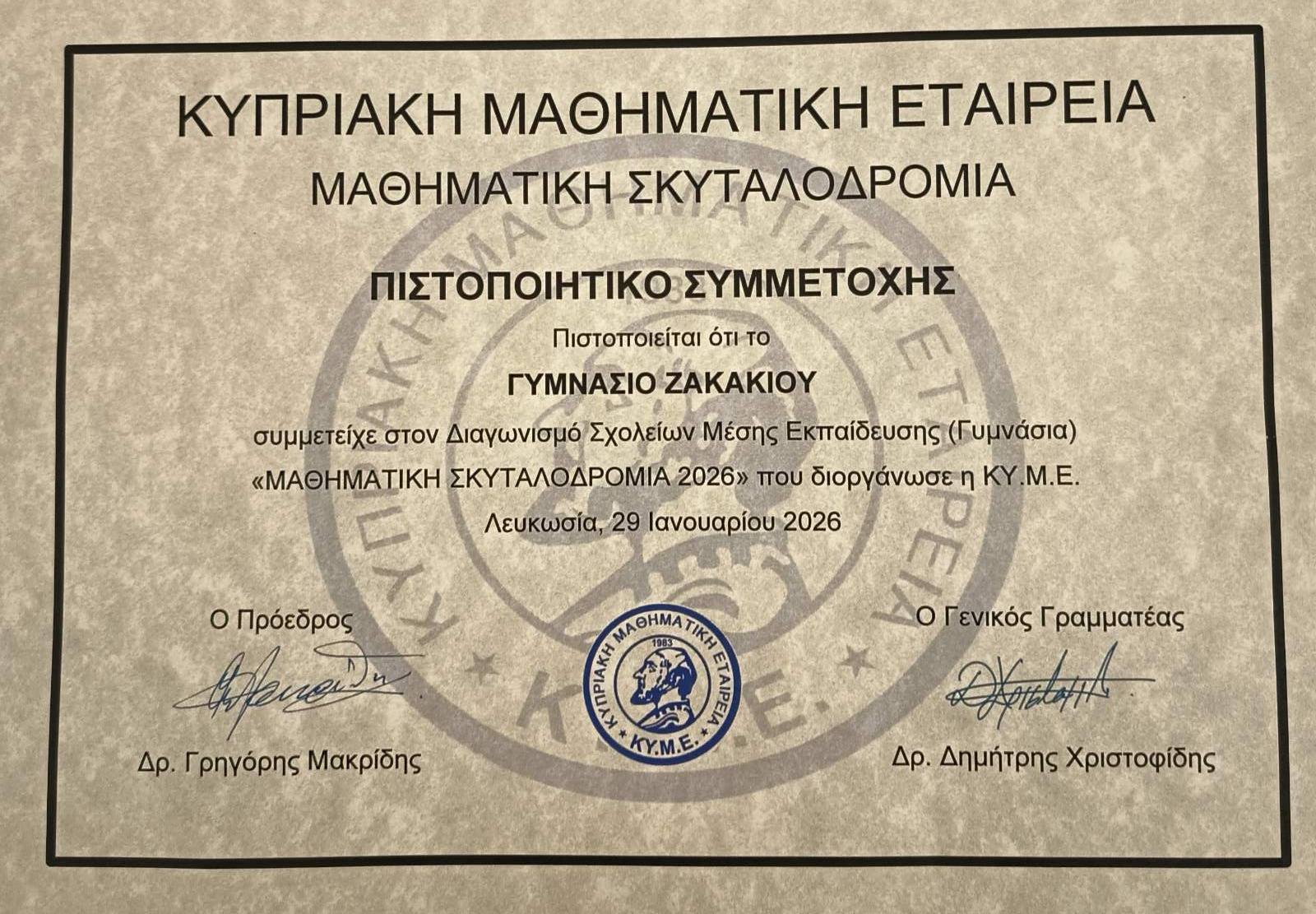 Στη Μαθηματική Σκυταλοδρομία έλαβαν μέρος 9 μαθητές/τριες (3 της Α' Γυμνασίου, 3 της Β' Γυμνασίου και 3 της Γ' Γυμνασίου).