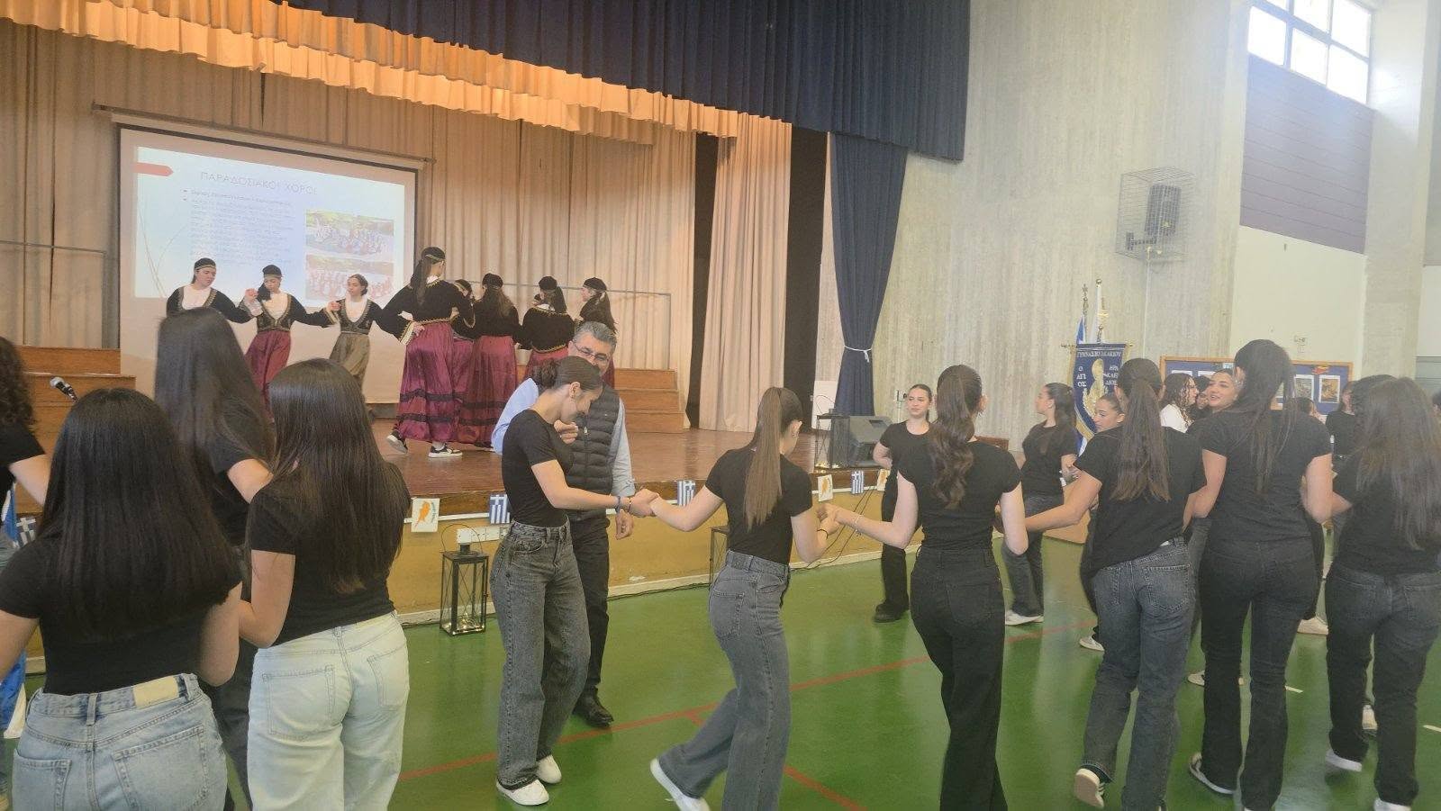 Χορευτικό μέρος: κ. Μαρία Γεωργίου και κ. Αθηνά Χαραλάμπους, καθηγήτριες Φυσικής Αγωγής